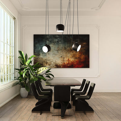 Modelled after a climbing plant, the Aim pendant light was designed to fill any space with a literal tangle of vibrant illumination. Sleek aluminium and anodised steel rose-bud shaped pendants hang from long black cables that can adjust the height and direction of the light source.The industrial yet organic Aim emits an even, steady light making it the perfect lighting solution for offices, kitchens, dressing rooms, hallways, and hotel lobbies. The ultimate in versatile lighting, one can choose from a range of configurations to achieve one’s desired result - be it a stand alone pendant draped from the ceiling or a playfully intertwined cluster.