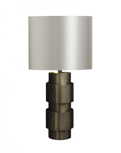 - Bronze base with dove grey silk shade and silk diffuser