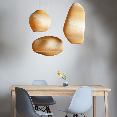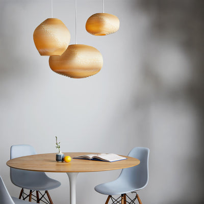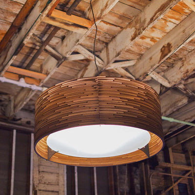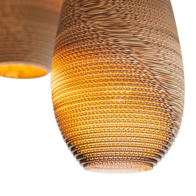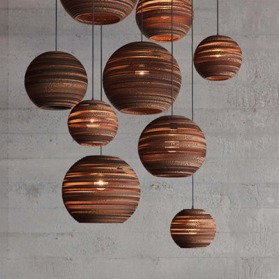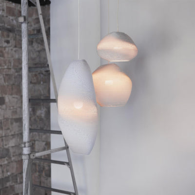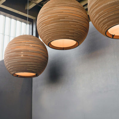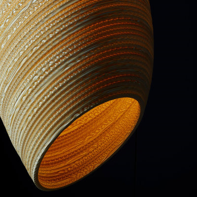 The Scraplights collection is a defining example of this approach. Each light is handcrafted from recycled cardboard, primarily sourced from post-consumer waste. Using precision laser cutting and non-toxic adhesives, the material is carefully shaped into layered forms that diffuse light in a warm and atmospheric way. Finished with a non-toxic fire retardant, Scraplights combine durability with a clear commitment to sustainability, craftsmanship, and considered design.