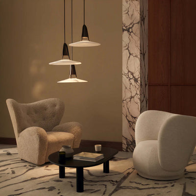 In your living room, a designer pendant light can serve as a stunning centrepiece, while also providing the perfect amount of light to create a cosy atmosphere. Our collection includes a variety of hanging lights and cluster pendant lights that will complement your living room decor and elevate the overall aesthetic of your room.