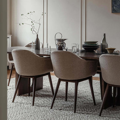 Our collection covers every style and proportion. Choose high back dining chairs for a more traditional look and generous support, or low back dining chairs for a lighter, more contemporary silhouette. Materials include high quality fabric dining chairs in durable blends, leather dining chairs for a sleek finish, and luxurious wool upholstery that feels warm to the touch. Many of our designs also sit comfortably alongside other dining room chairs, if you’re looking for an eclectic mix.