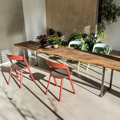 The frame and how it pairs with the fabric is just as important. Oak, walnut and metal bases all change the feel and longevity of the chair. For Scandinavian dining chairs like the 108 Chair by Fin Juhl, natural wood tones and tactile fabrics work beautifully together. Contemporary dining chairs might combine powder coated metal with bold colour, such as the Vitra Mikado Side Chair.