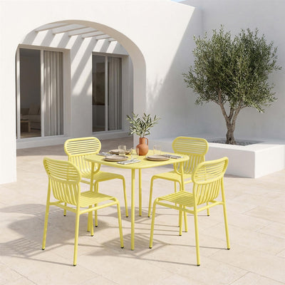 Petite Friture’s Week-End garden furniture combines this contemporary design language with materials suited to outdoor living. Crafted from lightweight yet durable aluminium, each piece is finished with brightly coloured UV-resistant epoxy coatings that protect the furniture while bringing a playful sense of colour to outdoor spaces. The chairs are robust yet easy to move, designed to stack up to six high for practical storage, and are water and UV resistant, making them suitable even for coastal environments. With a reassuring five-year warranty and a bold yet refined aesthetic, the Week-End collection offers a modern interpretation of classic outdoor furniture.
