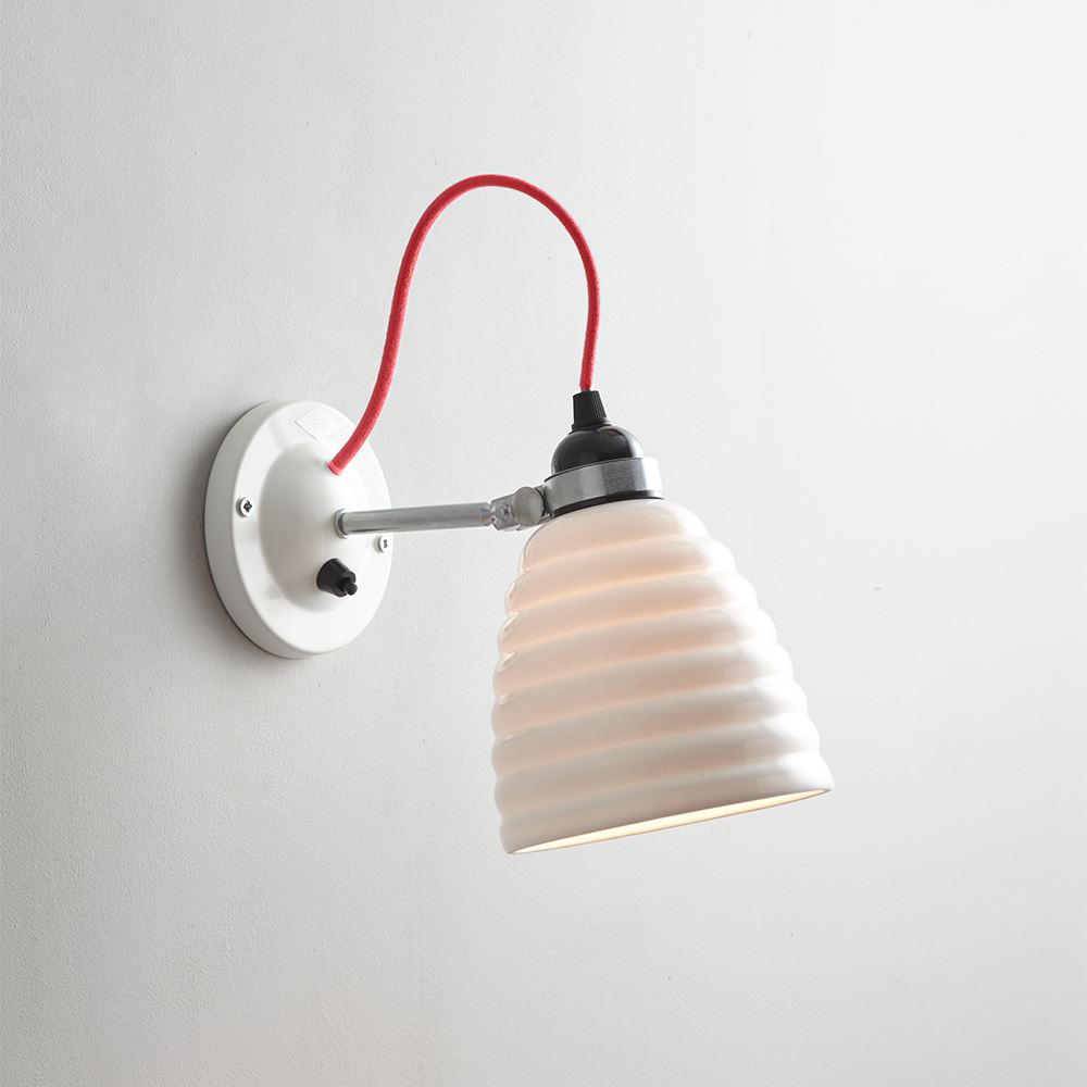 The Hector Dome Wall Light is a British design classic that seamlessly combines style and functionality. This industrial-inspired wall light features an adjustable translucent bone china shade, a complementary wall plate, and a smart cotton braided cable.