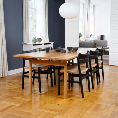 Handcrafted in Denmark, the Shaker Table is available in four finishes: soap-treated oak, oiled oak, smoked and oiled oak, or black lacquered oak. Pair it with the matching BM1 chair to create a cohesive dining setup rooted in Scandinavian heritage. Choose your preferred finish and order today to bring timeless Danish design into your home.