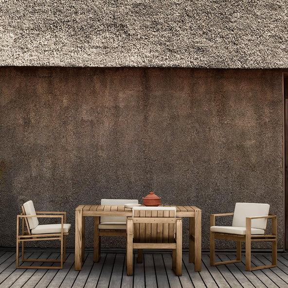 Designed by the famous and historic Bodil Kjær in 1959, the BK10 chair combines with the BK15 dining table to form a stunning garden furniture bundle. The BK15 dining table combines a cubist simplicity with outstanding craftsmanship. It is crafted from premium solid wood which is durable and resilient for outdoor use.
