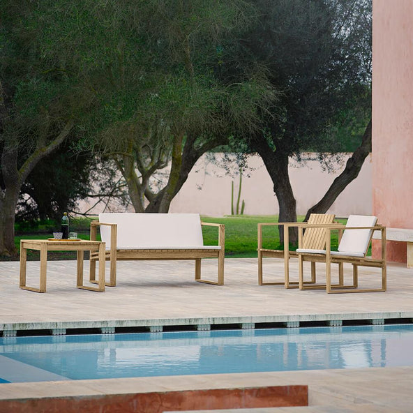 The bundle also contains two BK11 lounge chairs which are also made from the highest quality, solid wood frames. The generously padded seat and backrest, provide exceptional comfort and support, inviting you to relax and unwind. Finally, the BK16 side table takes inspiration from the geometric and clean aesthetics of cubist design. It is made from solid FSC certified teak and matches the rest of the lounge collection flawlessly.