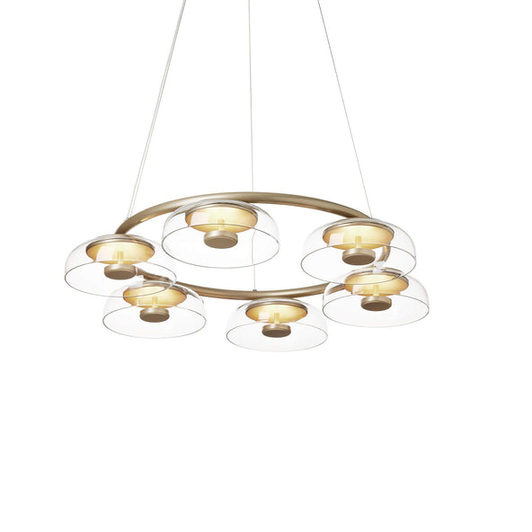 The Blossi collection has embraced the latest advancements in lighting technology. This chandelier is now available in a low voltage version, featuring an easily replaceable LED card, providing a flicker-free and energy-efficient illumination that complies with the latest EU lighting energy regulations. The specially developed LED card is nestled within a golden metal disc, diffusing light upward into the eight lampshades. These shades softly reflect light, creating a warm and inviting atmosphere. Plus, the low voltage version is highly compatible with most common dimming systems, allowing you to tailor the lighting to your exact preferences.