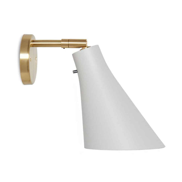 Designed by Niclas Hoflin, the Miller wall light has a switch directly on its shade for ease of use. Constructed from solid brass, the base and mount of this light are made with quality and shaped with style. The iconic shape of the aluminium spun shade is reminiscent of a cone. Housing an LED bulb, this light provides an effective and comfortable illumination suitable for any interior. The brass hinges offer a welcome contrast which makes this design even more eye-catching. Practical and minimal, this design is perfect for use in most settings: a living room, hallway, kitchen, or bedroom.
