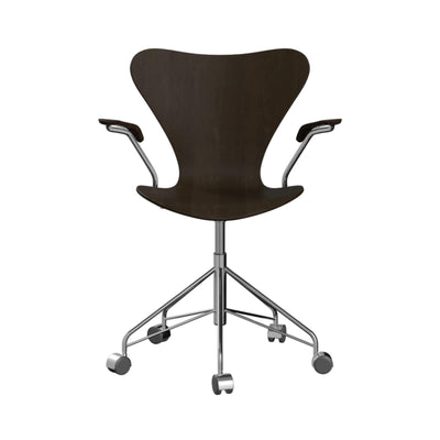 The Series 7 Swivel Wooden Armchair by Fritz Hansen offers a blend of timeless design and modern functionality, making it a sophisticated addition to any interior. Originally designed in 1955 by the legendary Arne Jacobsen, this iconic chair with its elegant curves displays character without overpowering the eye.