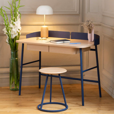 The Gaston desk is a neat little wall-mounted workstation that gives you a usable spot to write or keep your laptop without taking over the room. It’s made from natural oak with a smooth, matte feel, and the fold-down front becomes your work surface when you open it. Inside you get a couple of small drawers, a wider one underneath, and enough space for everyday bits you want to keep out of sight.