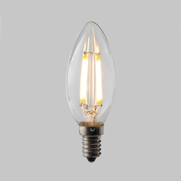 A much more cost effective version of the old incandescent filament candle bulb, this LED bulb uses considerably less energy and has a much longer life.
