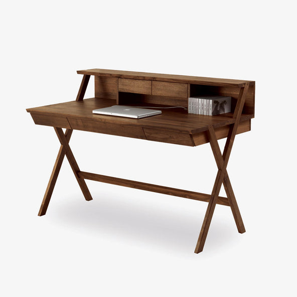 The Navarra Desk by Riva 1920 brings solid wood craftsmanship into a simple, functional form. Made in Italy, it’s compact but practical, with five drawers, a generous work surface, and open shelving to keep essentials close to hand. The walnut is smooth to the touch and rich in grain, adding depth without needing fuss. Its standout feature is the cross-shaped leg joint—a subtle detail that hints at the level of craftsmanship behind it. If you're after alternative wood options or a custom size, just get in touch. Like all pieces from Riva 1920, Navarra can be tailored to suit your space.