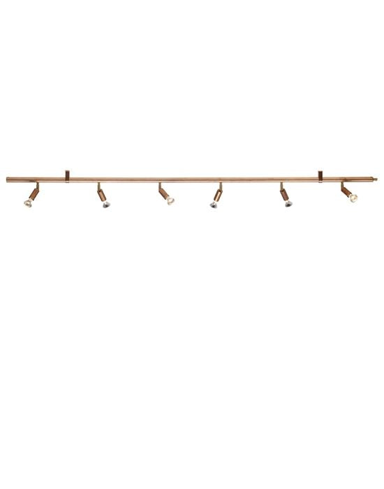 Contemporary row of spot lights which can be mounted veritcally or horizontally. Comes in a choice of rough copper or white enamelled metal. Bulbs are not included.
