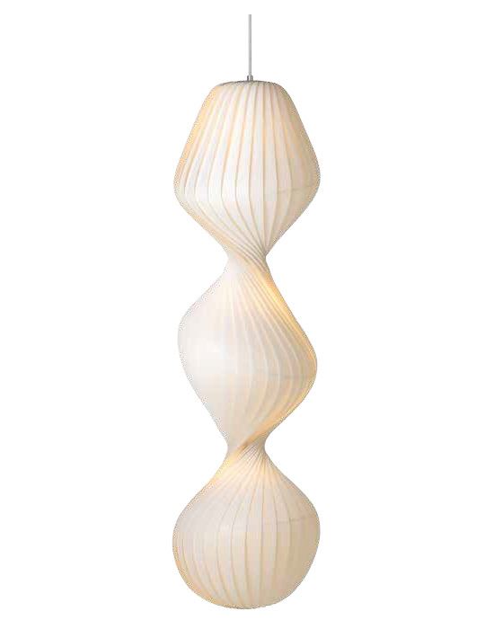 This is a new piece in Tom Rossau's collections of sculptural lights. The warm stringency typical of Scandinavian design is easily recognisable in his work. The 2017 novelties continue Tom's organic signature line but also introduce models of a stricter geometry and new cool materials.